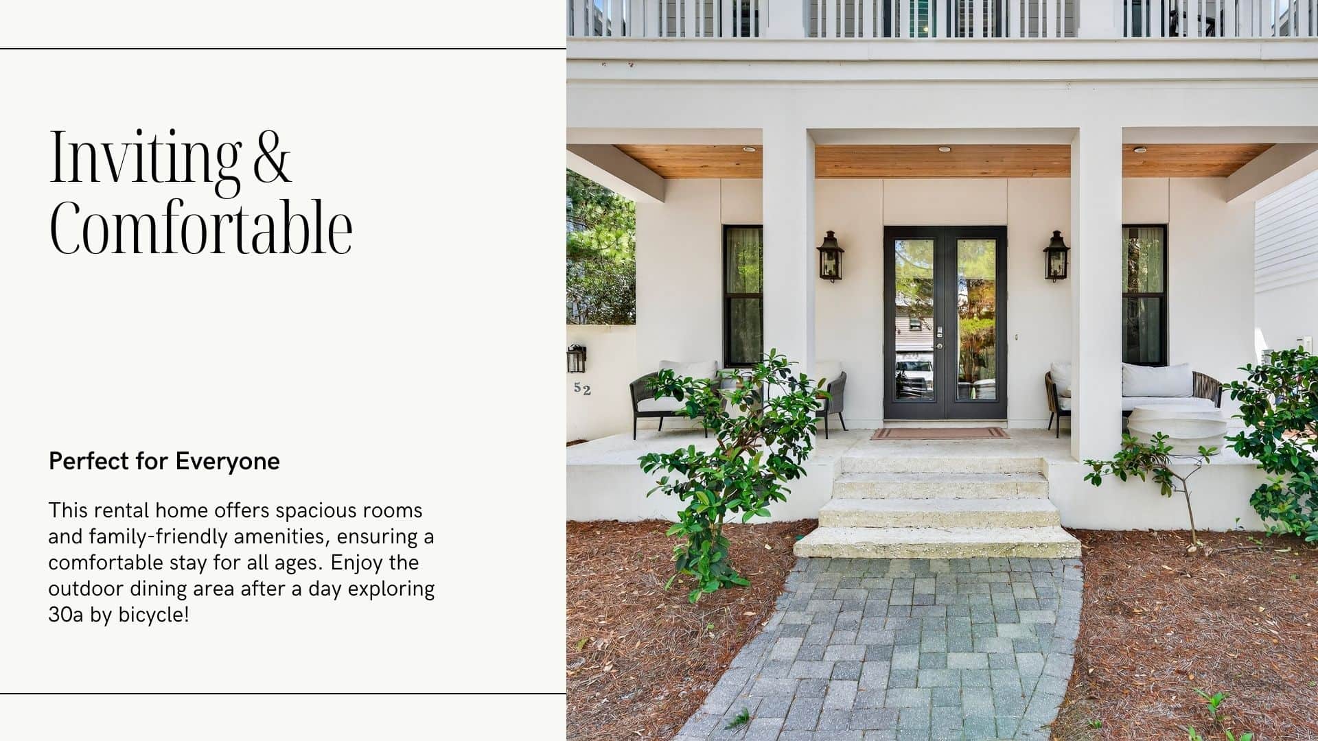Whether you're planning a family vacation, a getaway with friends, or an extended stay by the beach, our home offers the space, amenities, and location to make your time on 30A unforgettable.